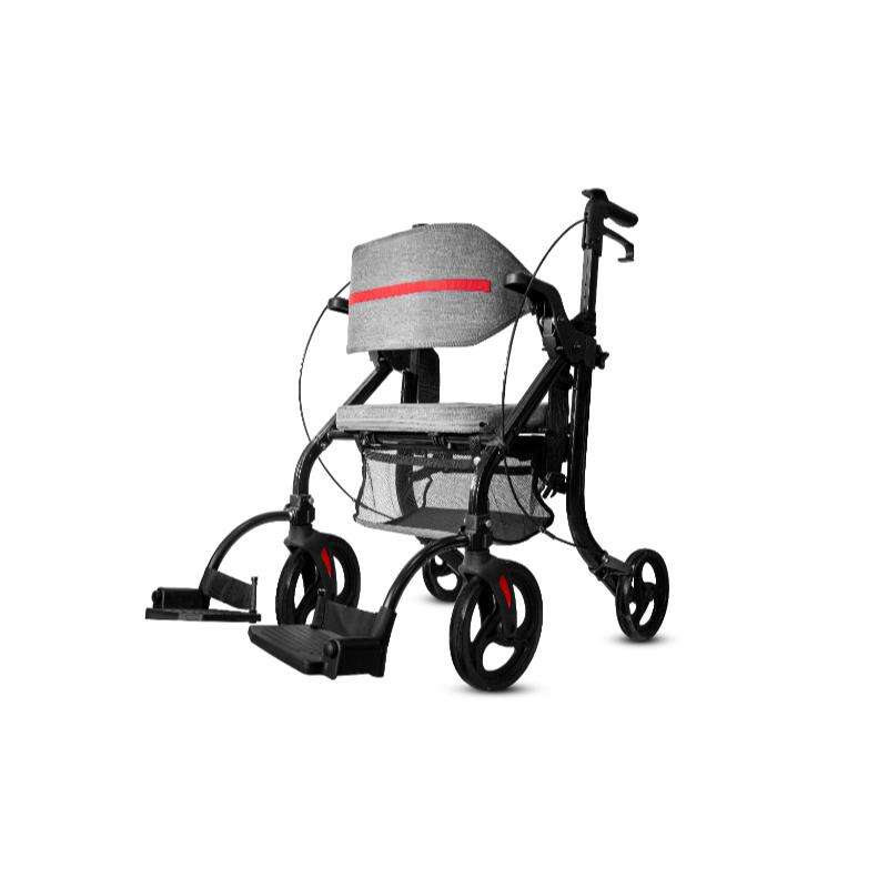 ①Versatile design combines wheelchair, rollator and shopping cart.